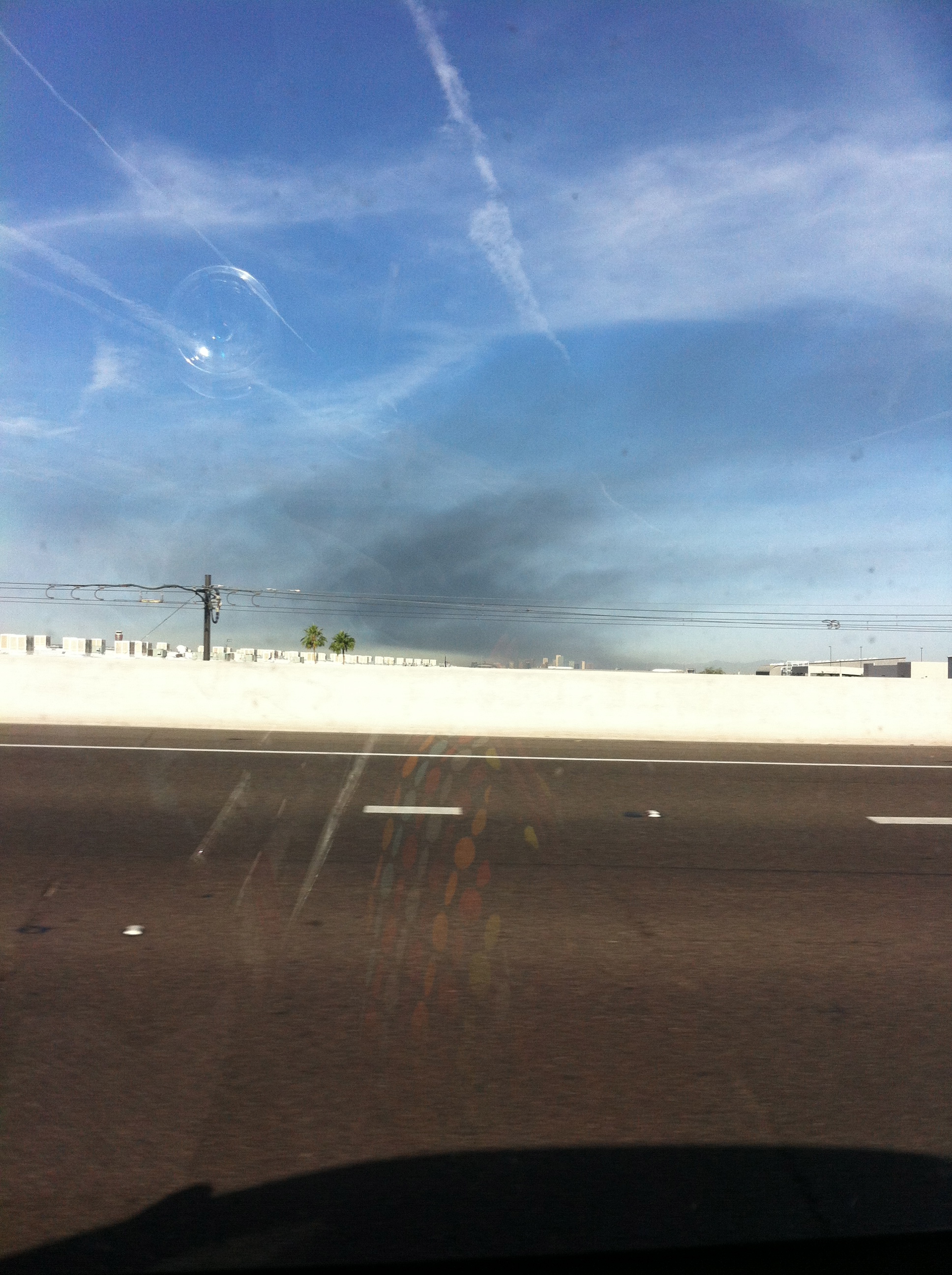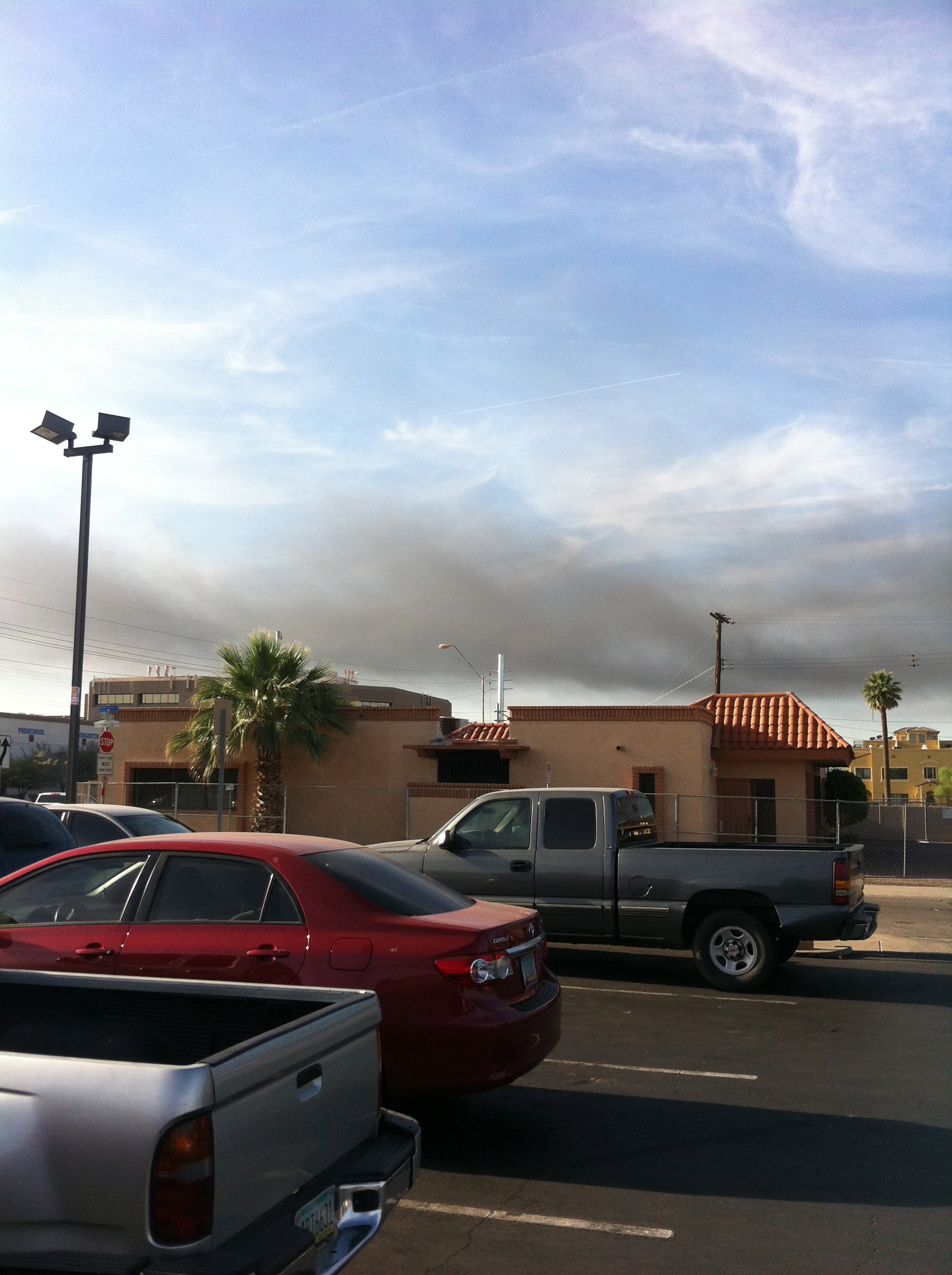 The sad thing is that these clouds of smoke or general pollution or whatever they were are only slightly darker than the fog of gross, polluted air that usually sits over downtown Phoenix. Something very wrong clearly happened today to cause these specific clouds, but to this sustainability major (almost graduate), they represented the horrendous air quality to which Phoenix has become accustomed. Seeing those black, toxic clouds was like having a knife thrust into my heart.