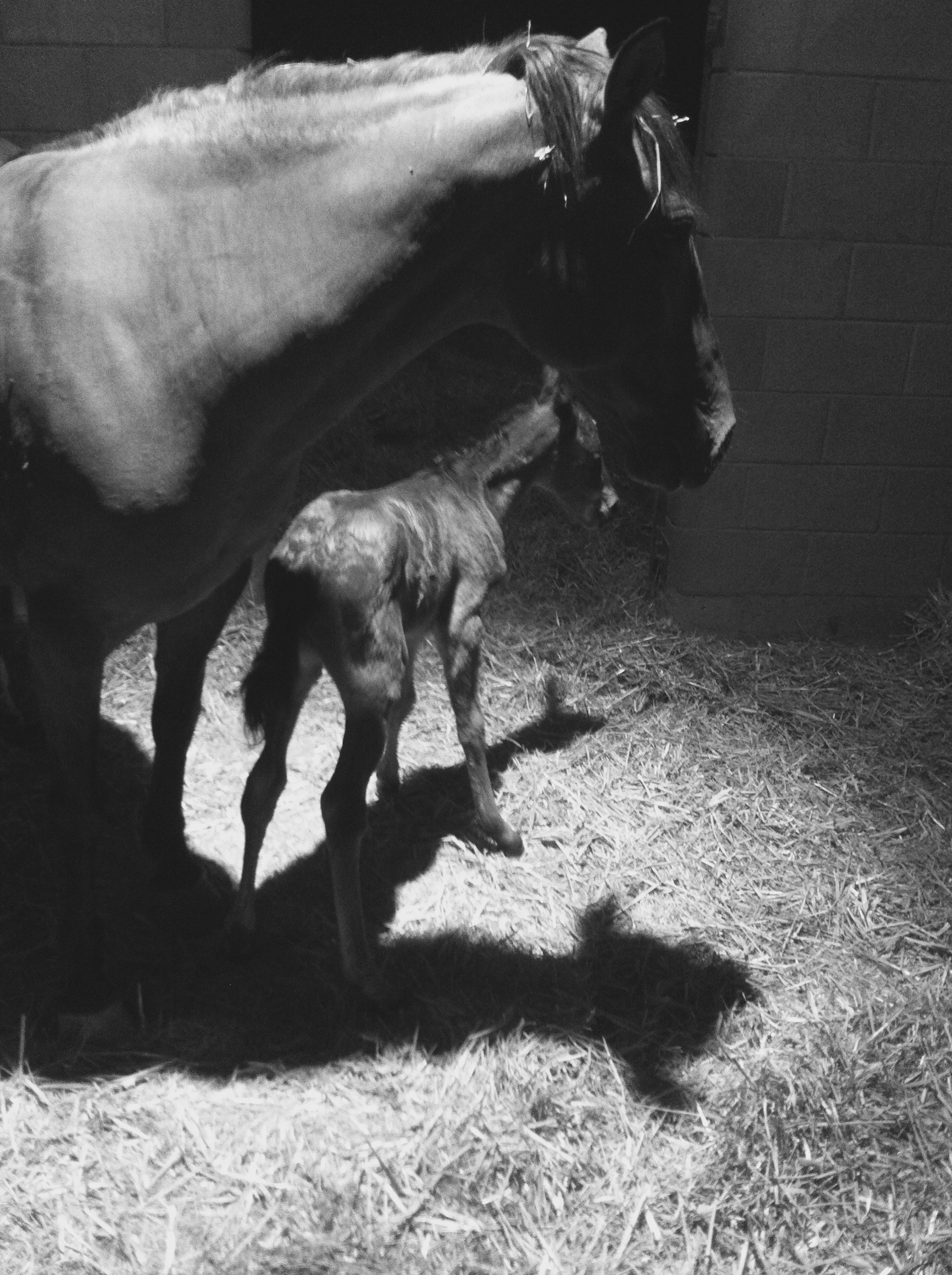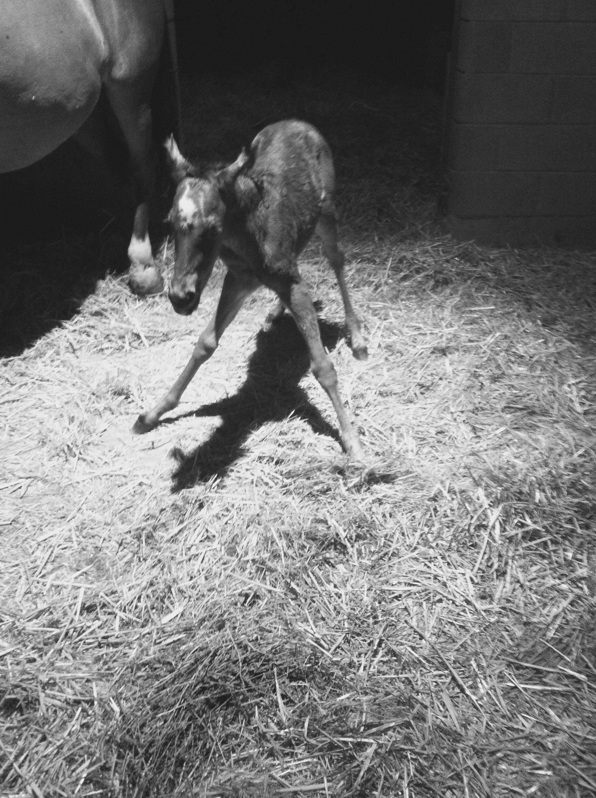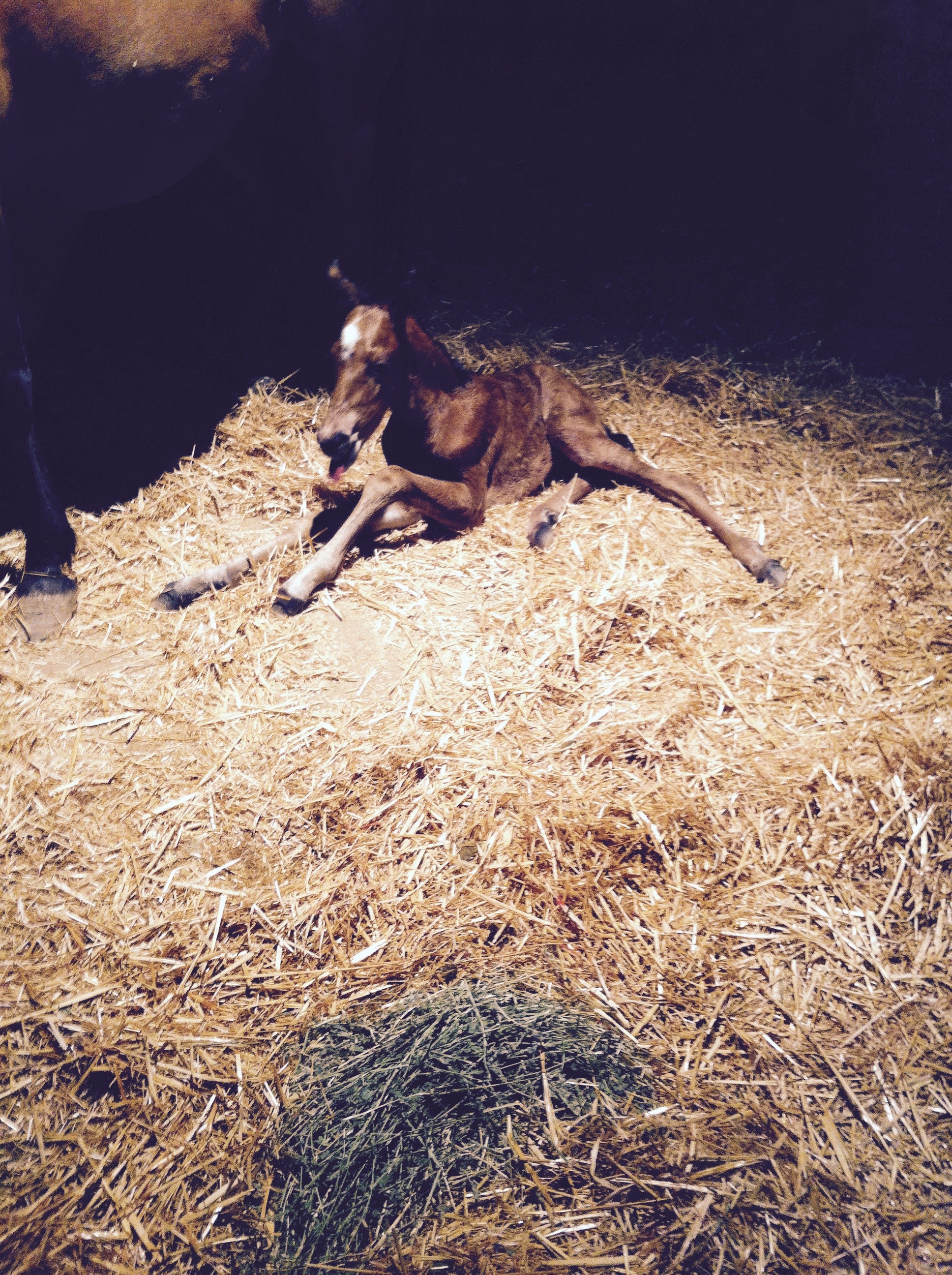 We pulled up chairs and watched. I called Bre, our ranch manager, and told her to book it down to the ranch. My mom called and asked how everything was going, and right as I started to answer that Rain was down and seemingly groaning, Jim jumped and pointed. A hoof. A foal hoof.
