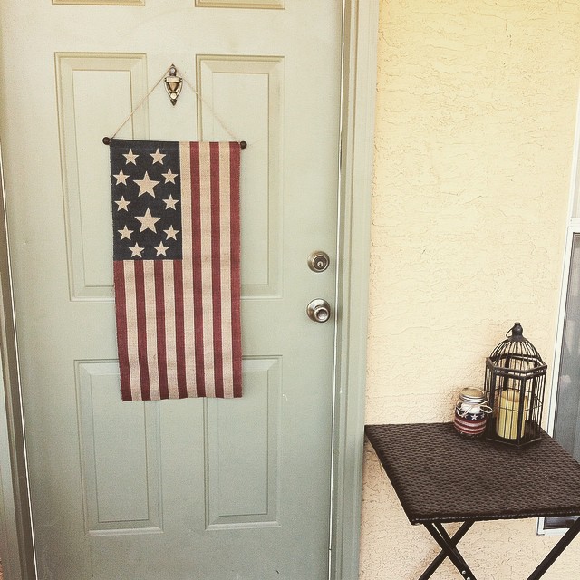 That “land that i love” printable came from Pinterest and the frame from Dollar Tree. My boyfriend had bought me white roses four or five days before the party, and they had held up so well by the fourth that I just stuck two flags in the vase and called it a centerpiece.