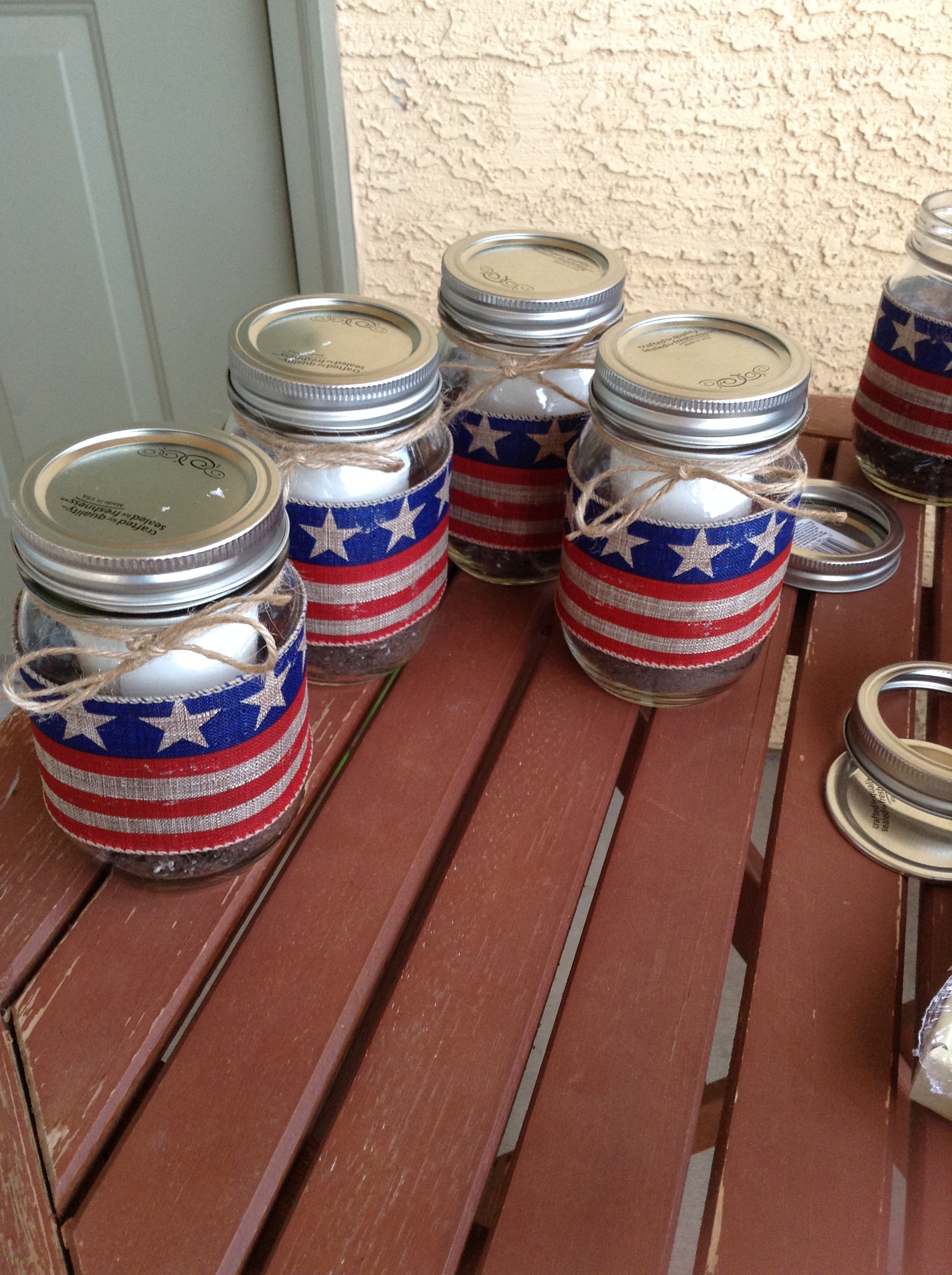I also made a bunch of patriotic mason jar candle holder thingys that I saw in a picture while going through Michael’s decorations.