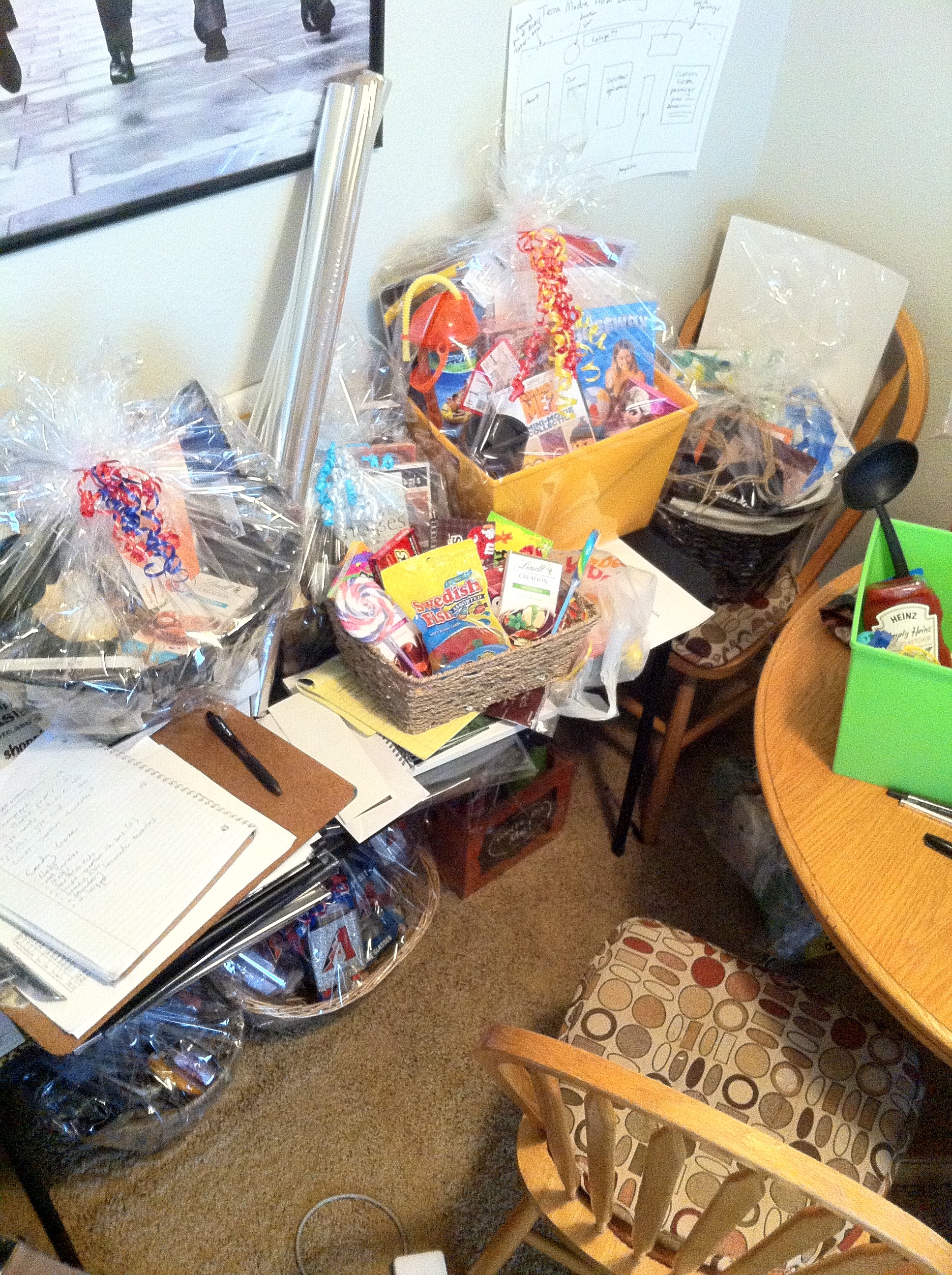 By the end of June, we were gathering basket items. By July, we were putting baskets together. Gathering more items. Printing out certificates. Creating more hype over social media. Spreading more flyers. Meeting at the Carefree Resort every few weeks to go over room plans. Figuring out music. Figuring out AV equipment. Going back to Target for ribbon and plastic wrap and more cheap picture frames than I care to admit.