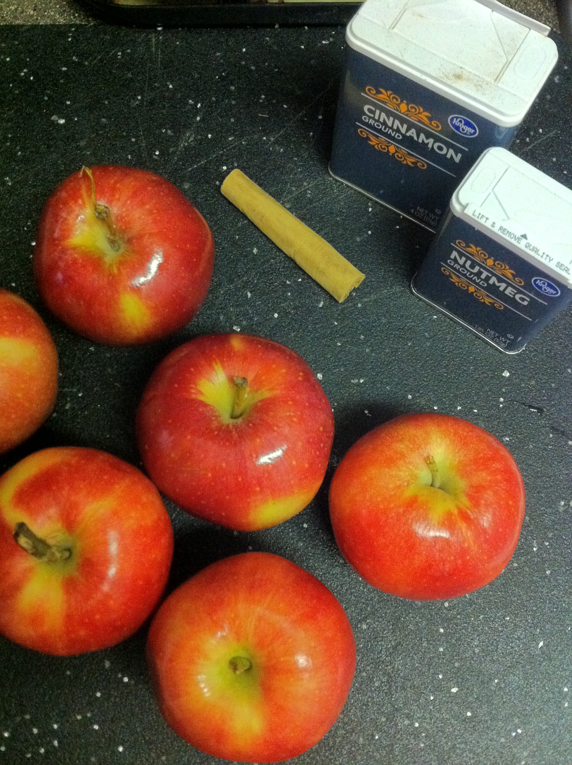 In explanation of the huge bag of apple cores I brought to work for the horses today, I mentioned to a few people that I’d made homemade applesauce the night before. They then asked for the recipe. I can’t take credit for it, as much as I’d like to – I found it on Pinterest here.