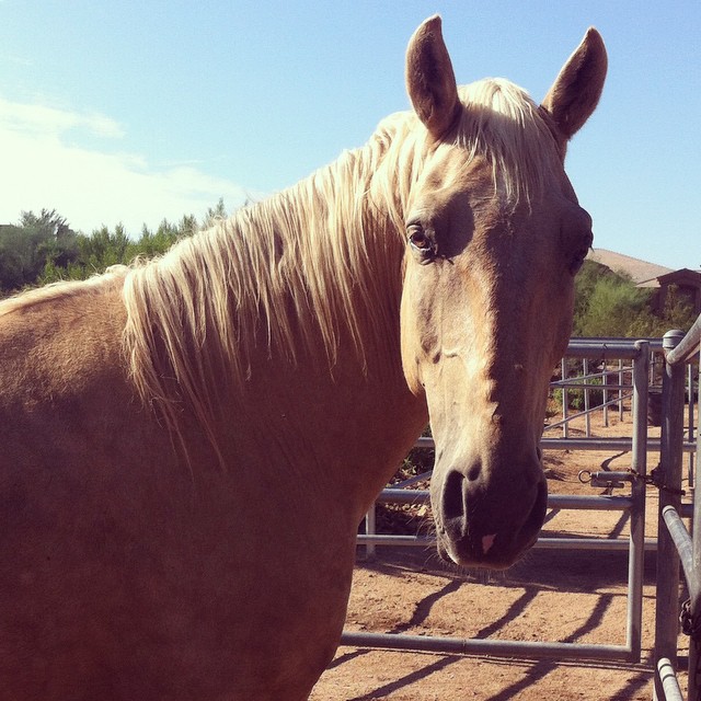 To end our tour, Jim took me over to the very last horse at the end of the long row of stalls. He was a big, stunning palomino with light brown eyes. Something in the Earth shifted when I looked at him. I think my breath seriously caught in my throat as our eyes locked.