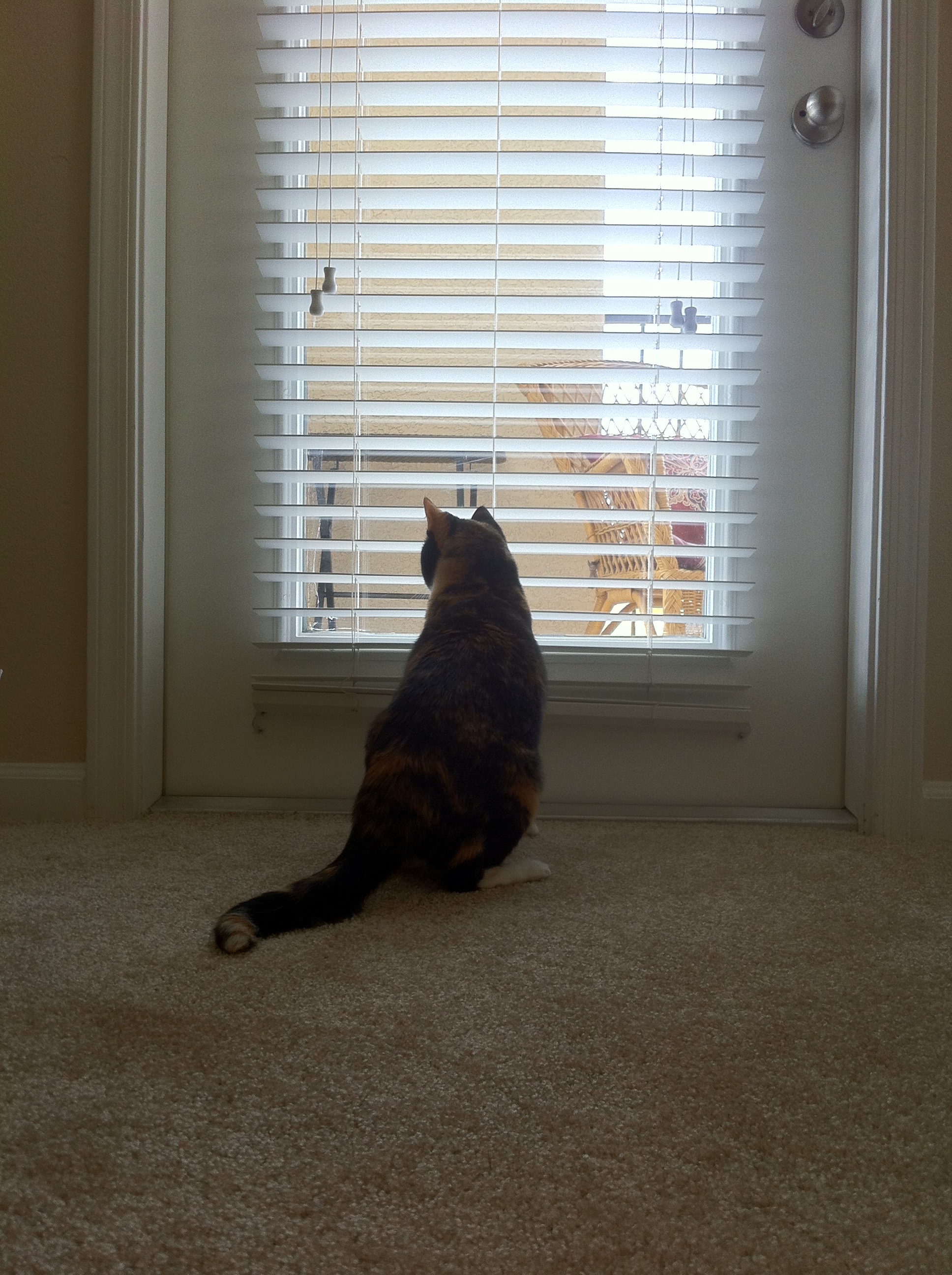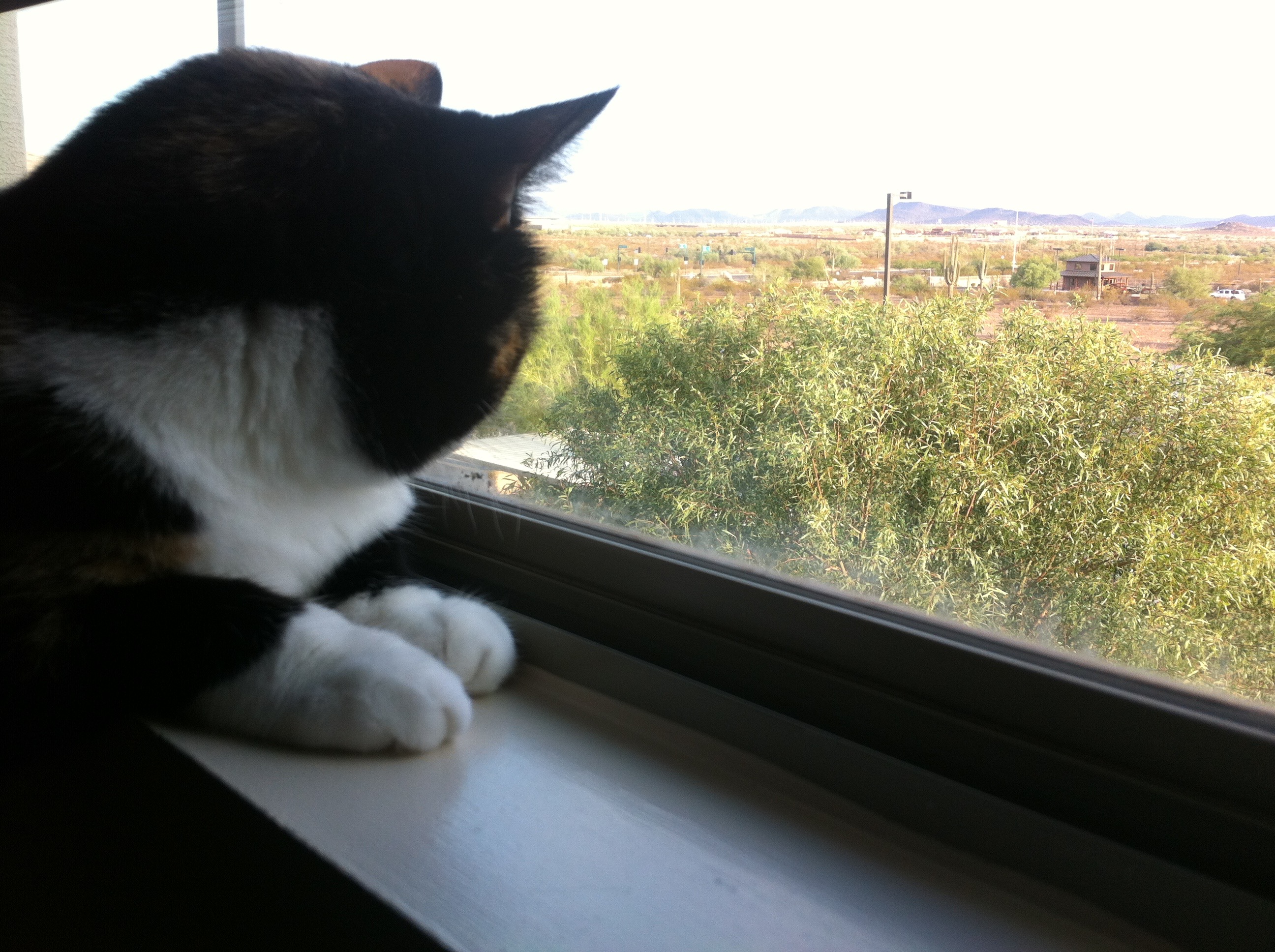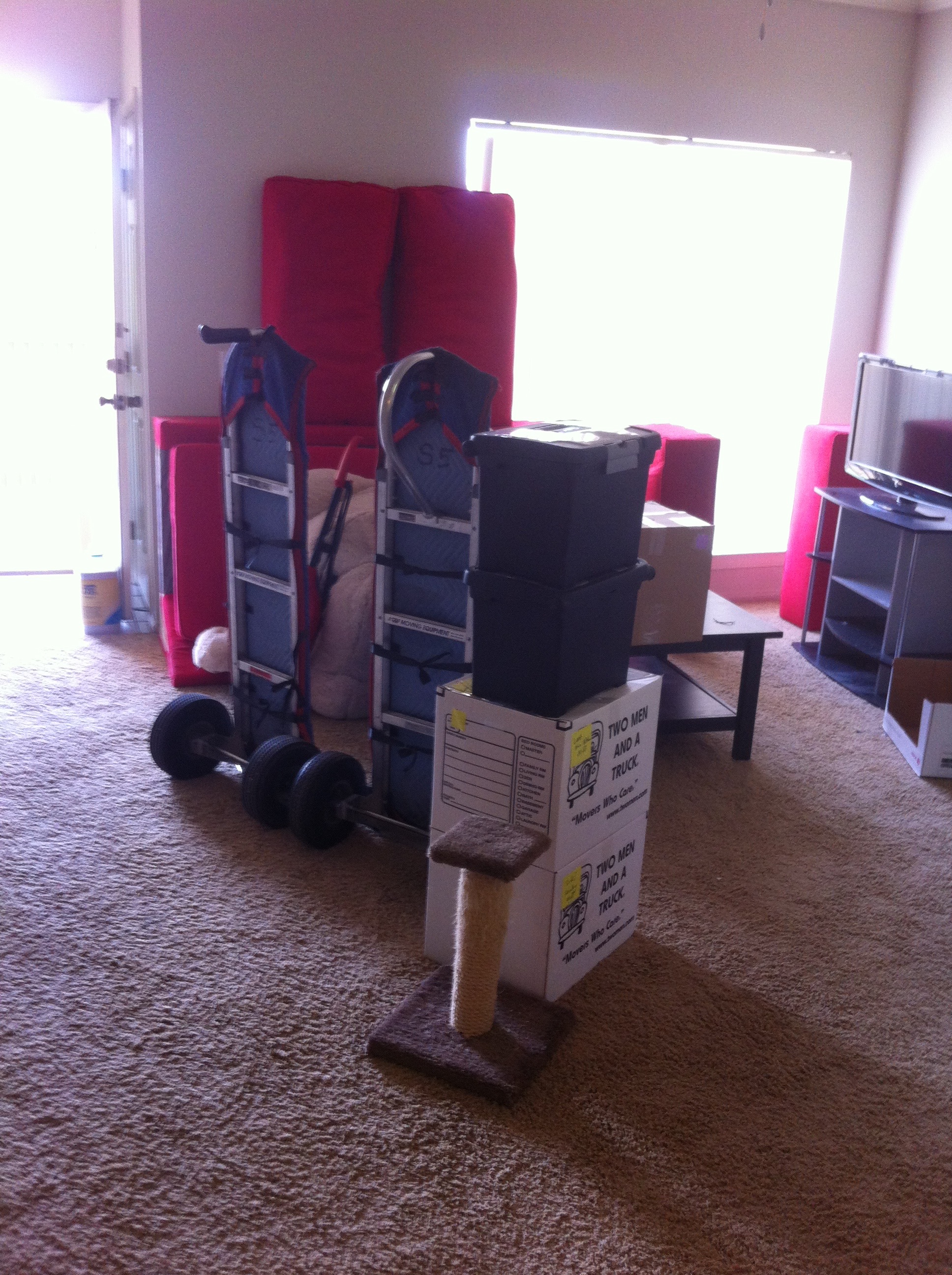 Our movers got to the Ahwatukee apartment at ten to eight. Prior to that, we put Gypsy in the bathroom with her litter box and carrier and shut the door so we could keep the front doors open. I think the worst part of the entire day was listening to her cry behind the closed door as she tried to figure out what was going on.
