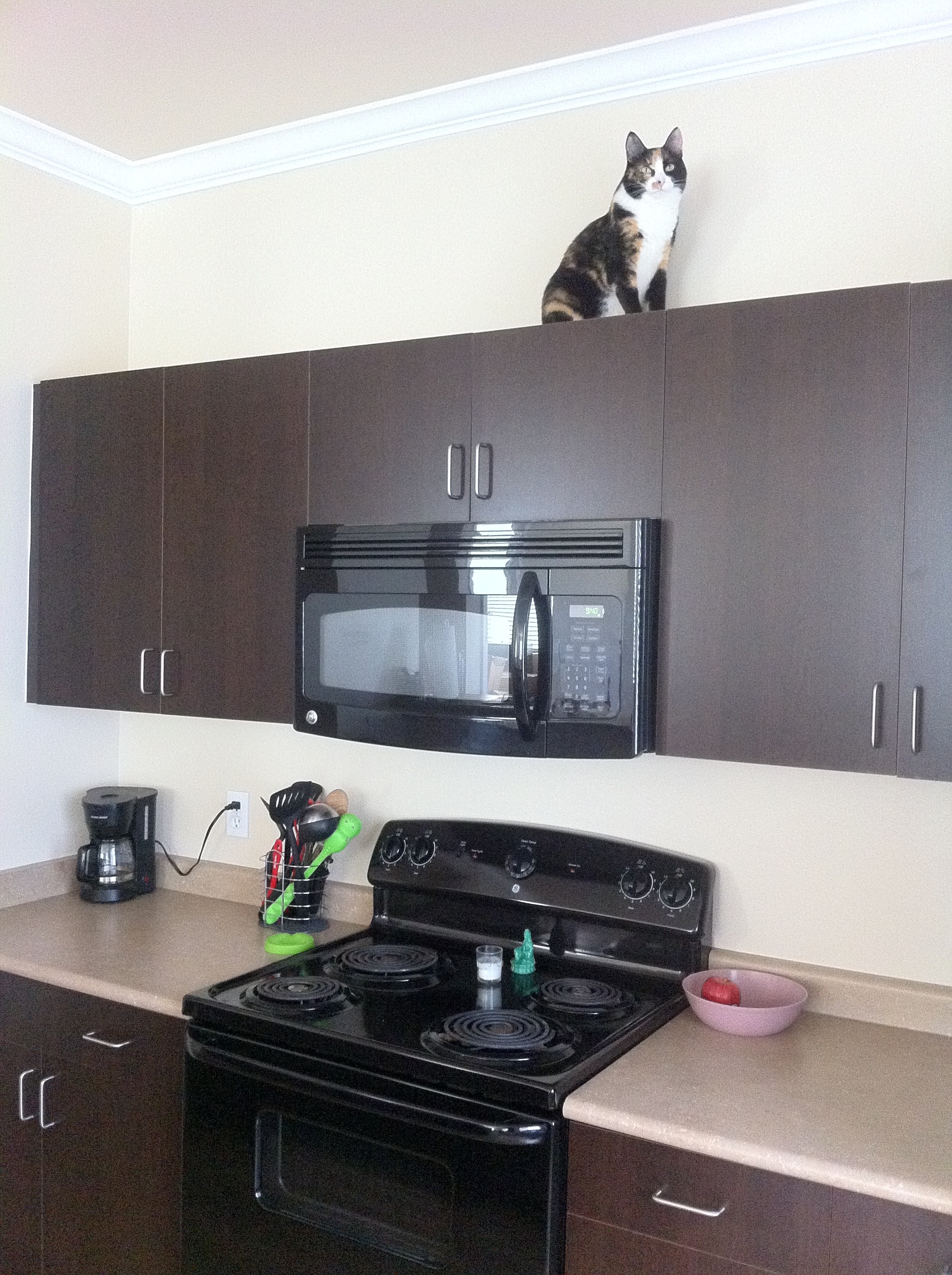 As for kitty? She is just in heaven. She’s been prowling around the place (and on top of the cabinets) like she owns the joint, which I suppose she does.