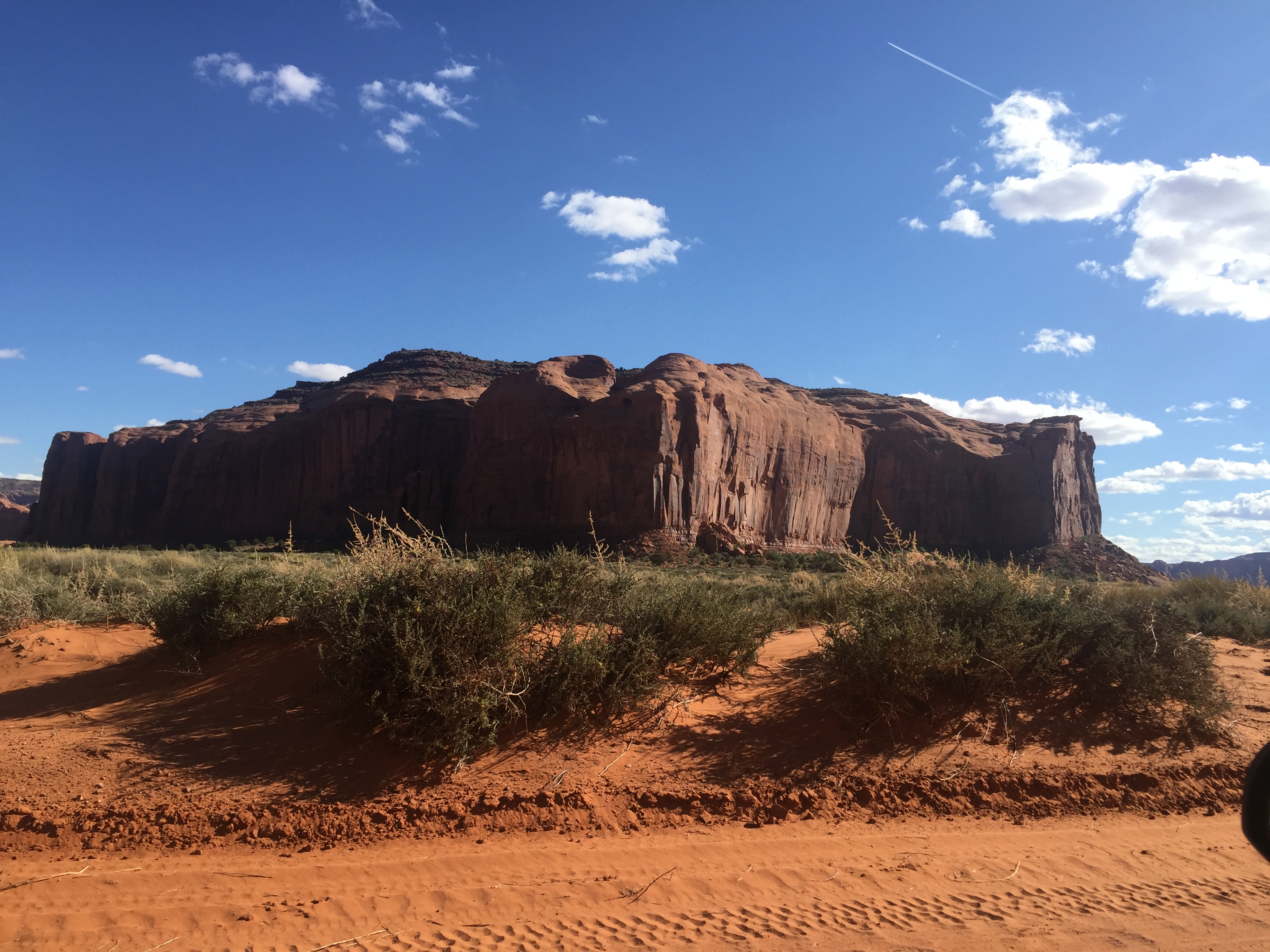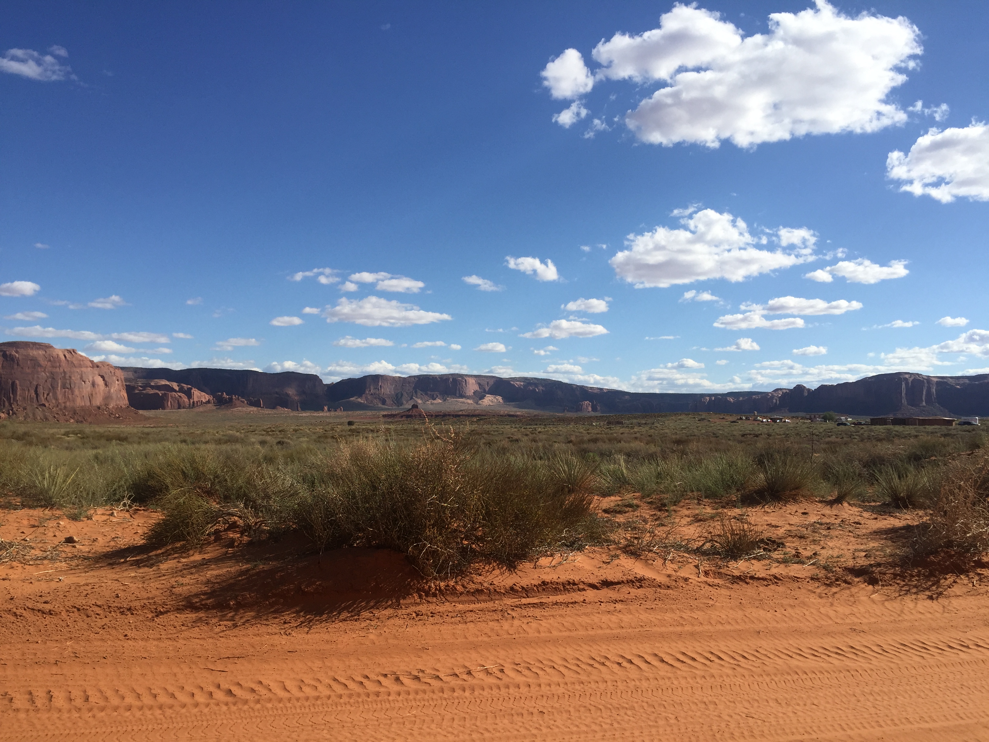 Getting to Monument Valley from the Phoenix area means taking the I17 up to Flagstaff then getting onto the 89 for a couple hours. Then I got on the 160 East towards Tuba City. By then I was in Navajo country, and while the landscape was beautiful, the land around Tuba City was also somewhat unsettling. It’s primarily flat, red, and empty except the occasional scattering of odd hills that looked like someone had taken a giant spoon, scooped up the earth, then placed it back onto the ground.