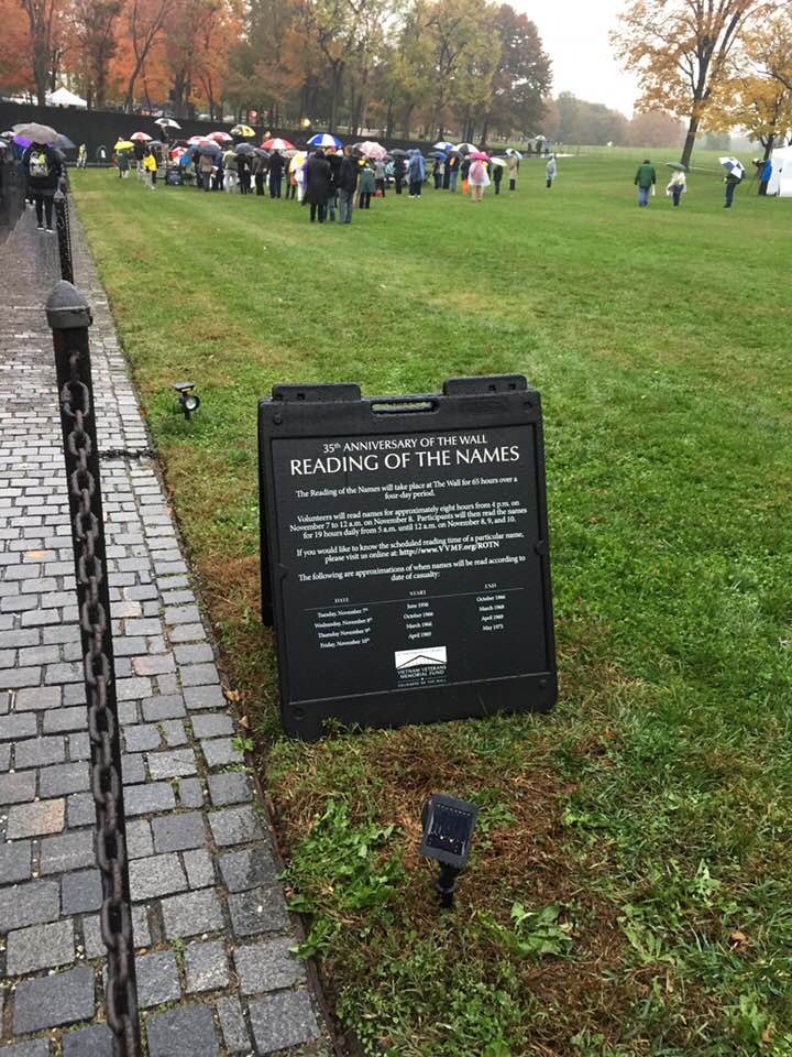 It was raining, gray skies overhead. Because of the weather, it was eerily quiet. The only sound as we stood there in the memorial was the sound of volunteers reading name after name after name of each soldier who had fallen during the Vietnam War. Without knowing it, we’d visited the memorial during the 35th annual reading of the names.