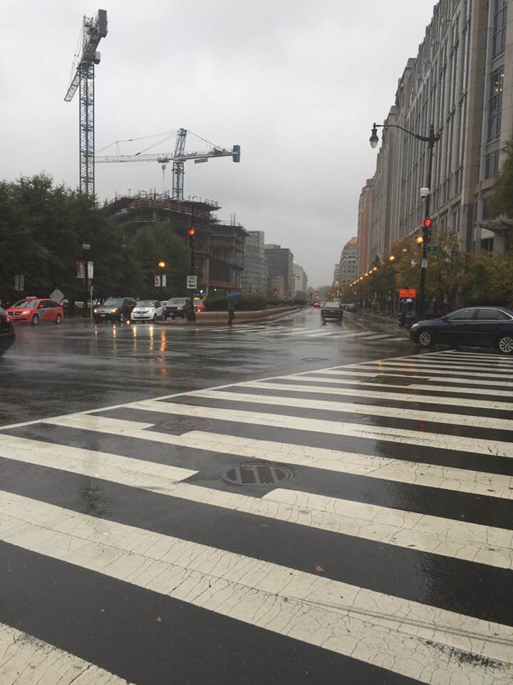 The next day, the 7th, we bundled up and braved some seriously cold wind and rain to go see the National Mall. After navigating the entire city of London by myself for eight days, the map of D.C. was almost too easy to follow. One glance and we knew exactly where to go. And so, wearing all our sweaters and coats, we set out on our short 1.3 mile journey from our Airbnb to the Mall, stopping into CVS first to get an umbrella, then rejoining the D.C. pedestrian traffic on the streets of one of the busiest cities in the U.S.