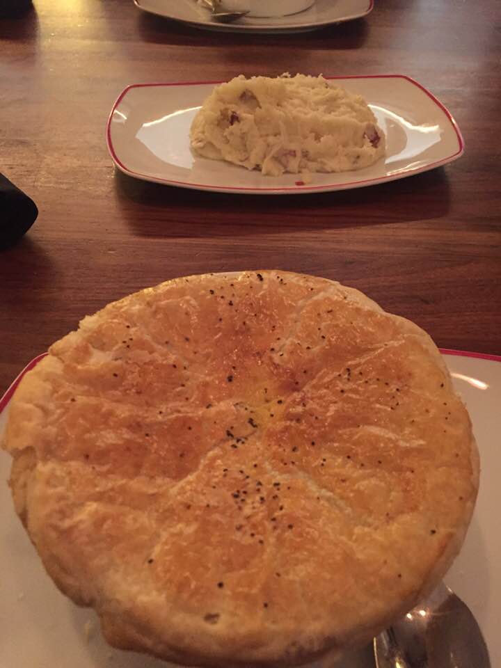 As night fell around us (it gets dark early on the East coast in the fall!), we walked to the restaurant and ended up getting there something like 30 minutes early just to warm up. We both got chicken pot pies, because we’re 12, and also because seriously they’re amazing.