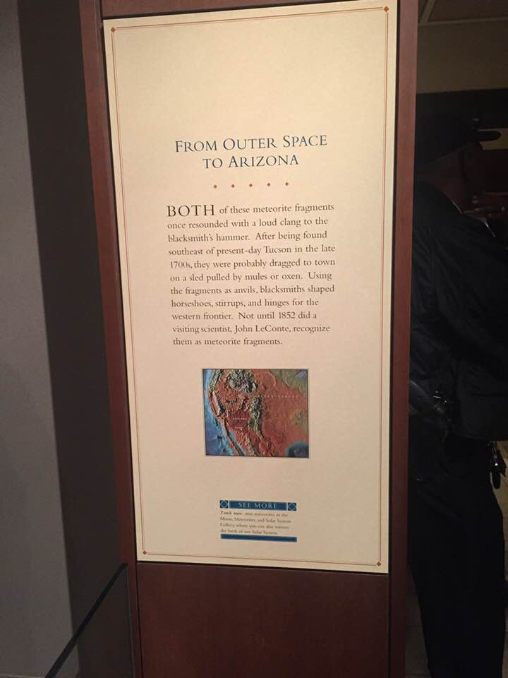 And before we left, we saw something totally cool (to us, anyway) – a piece of the meteorite that fell to Arizona which carried my favorite stone – moissanite!