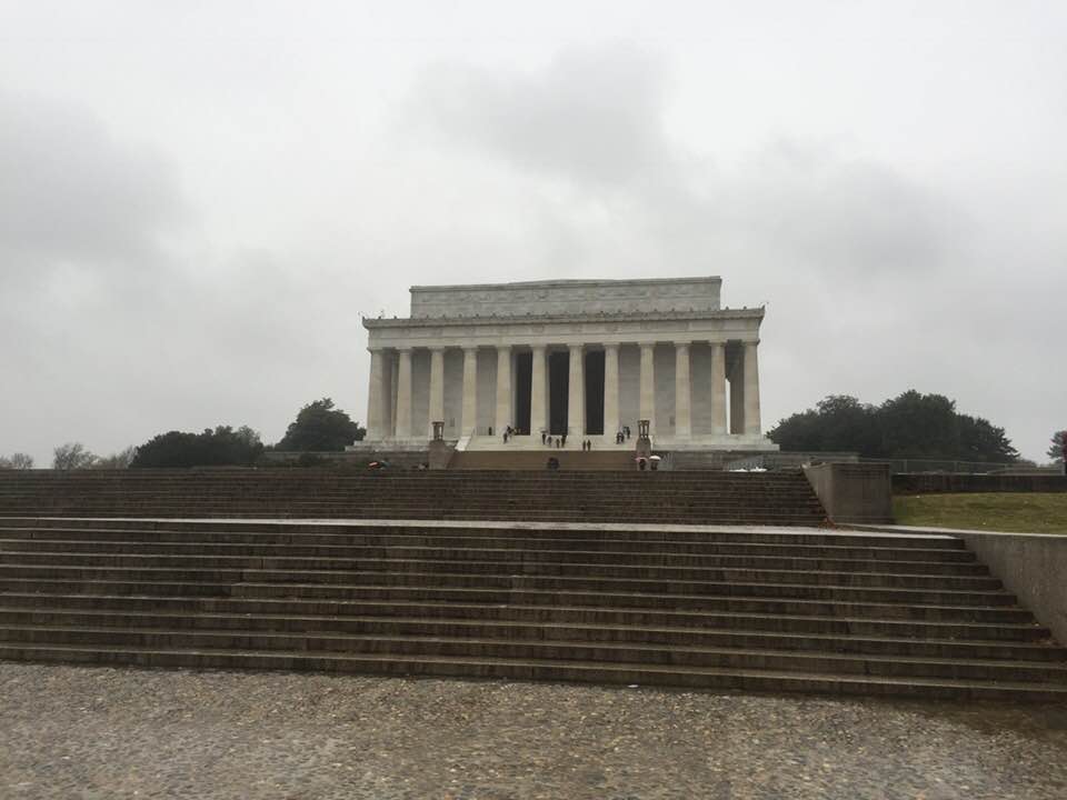 The next day, the 7th, we bundled up and braved some seriously cold wind and rain to go see the National Mall. After navigating the entire city of London by myself for eight days, the map of D.C. was almost too easy to follow. One glance and we knew exactly where to go. And so, wearing all our sweaters and coats, we set out on our short 1.3 mile journey from our Airbnb to the Mall, stopping into CVS first to get an umbrella, then rejoining the D.C. pedestrian traffic on the streets of one of the busiest cities in the U.S.