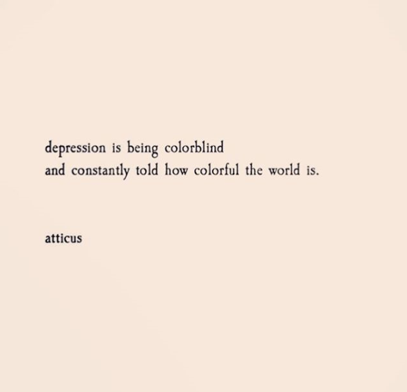 And so this post is just as much about compiling a detailed explanation of depression from the point of view of someone who is currently fighting it as it is about offering some resources for those who might want them. (Spoiler alert, to rid you of any concern right away, I am getting professional help in addition to sitting over here making my lists.)